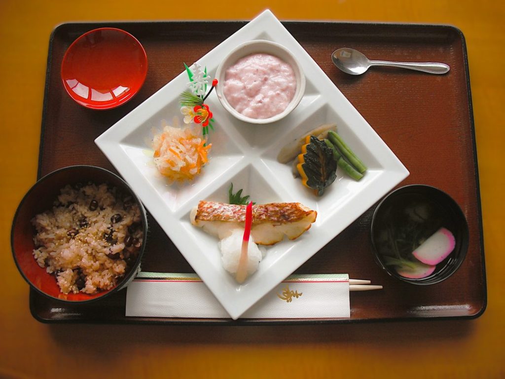 お膳に並ぶのは、お正月ならではのおせち料理とお屠蘇!