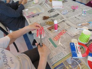 入居者様同士で協力しあって、最後は色とりどりの風鈴が完成しました♪