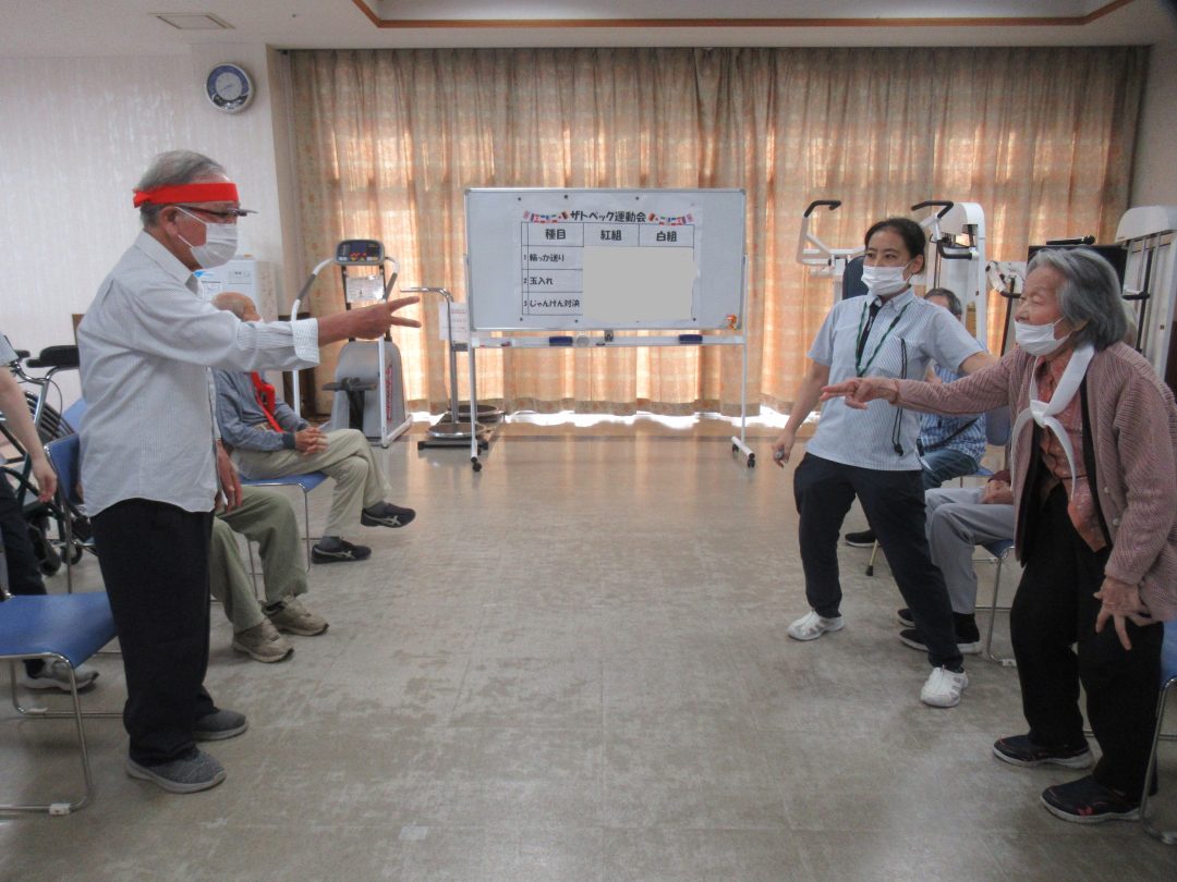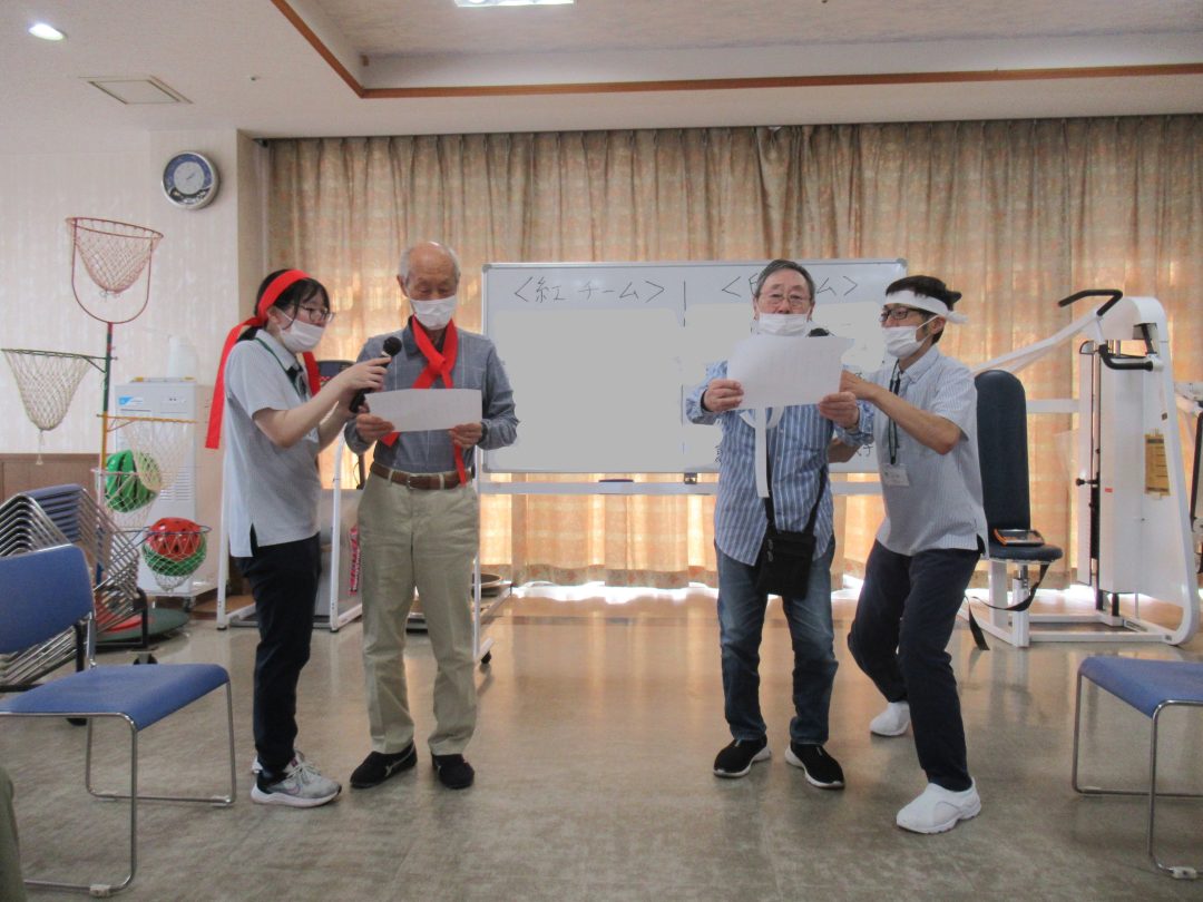 向いあう利用者様同士で立っていただき、じゃんけんをします。