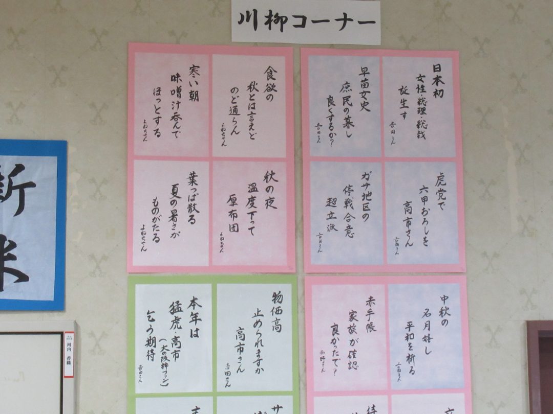 絵を描いたり、俳句や川柳を詠んだり、塗り絵や貼り絵をしたり・・・・。笑い声もいっぱい💚思い思いの作品作りに、みなさん夢中です。習字では、「秋風」「紅葉」「団栗」など、季節の言葉をゆっくりと書かれ、「むずかしいけど楽しいね。」と笑顔😊がこぼれました。出来上がった作品はどれもあたたかく、見る人の心を和ませます。