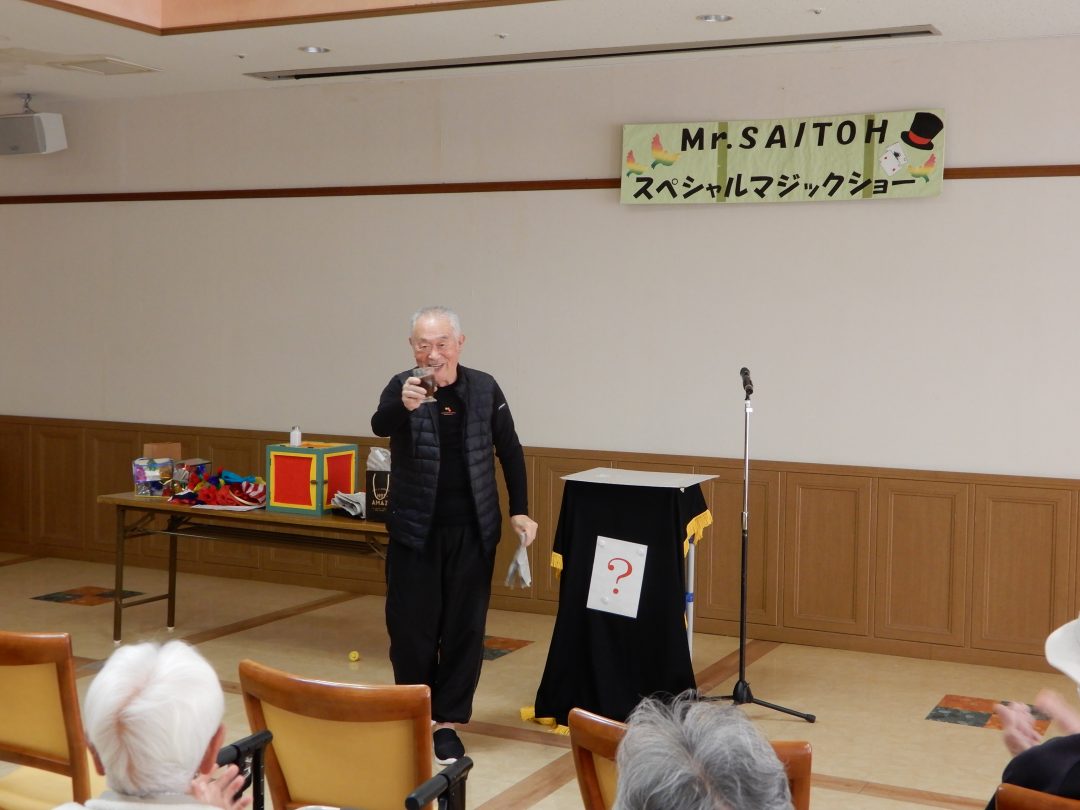 本格的なマジックショーを入居者の皆様に披露していただきました。