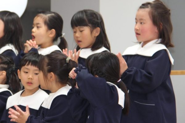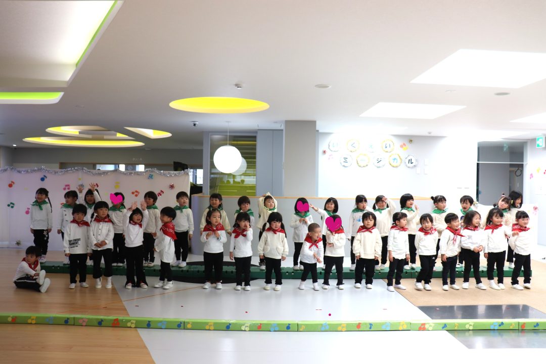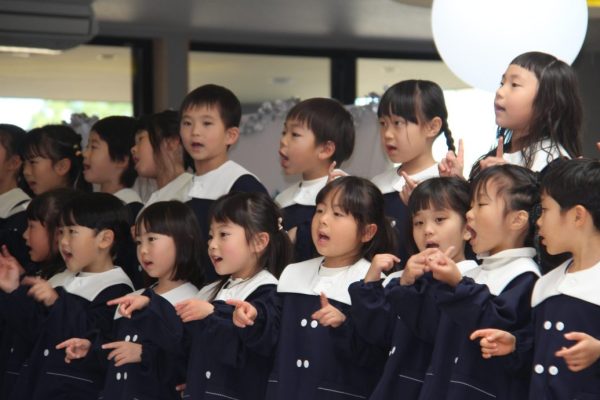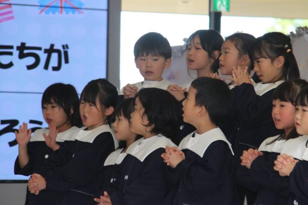 5歳児の子どもたちにとって育英認定こども園での最後の発表会となりました。小さい頃は、舞台の上で涙を見せることもありましたが、今では3歳児や4歳児をしっかりと引っ張っていく頼もしい姿や相手を思いやる優しい姿が見られます。それは、日々の園生活の中で様々な挑戦を重ね、失敗や成功を繰り返しながら、友達と共感したり、互いに励まし合ったり、一つ一つの体験が育んできた子どもたちの姿です。保護者の方と一緒に子どもたちの頑張りと成長を心から感じ、温かい拍手が会場を包みました。