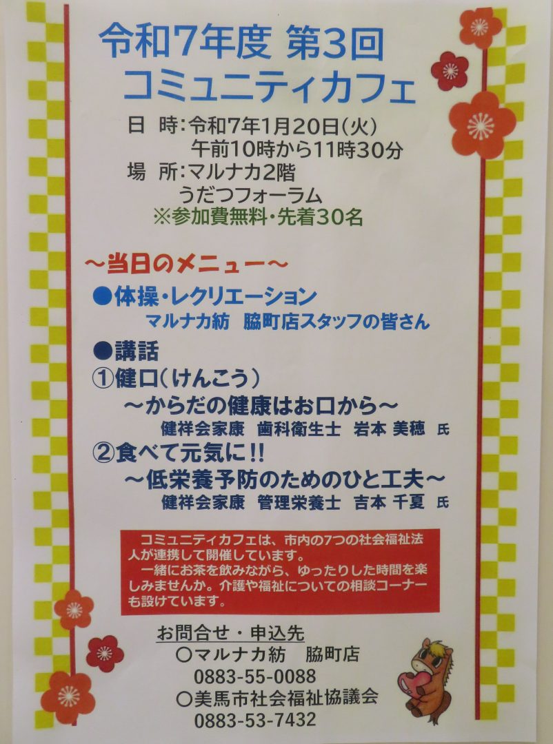 マルナカ脇町店2階のうだつフォーラムにて令和7年度 第3回コミュニティーカフェを開催しました☕️✨