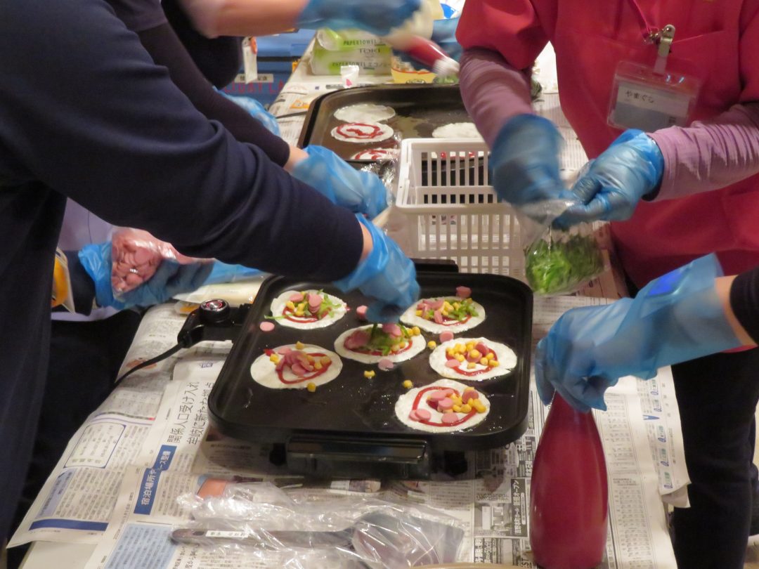 会場後方では、調理レクリエーションとして、餃子の皮を使ったピザ作りを行いました🍕🥟