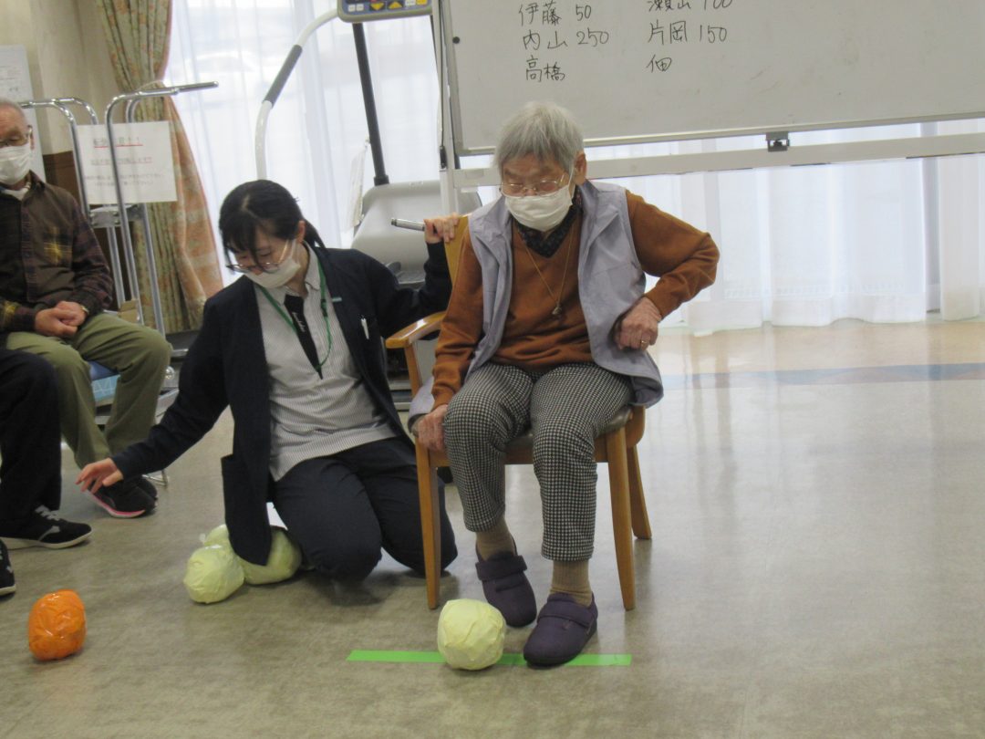 ゲームの内容は、ダンボールで作ったトンネルに向かって、新聞紙を丸めたボールをキック!通過すると得点となります。トンネルは3個あり、真ん中のトンネルを通過できたら100点を獲得できます。「真ん中や簡単!」と思うけど、これが案外難しい。プレッシャーが・・・・・邪魔をするのです。向かい合わせになり、交互に「それっ。」「いけー!」と勢いよくキック。惜しい場面では、「あーっ!」、入った瞬間には「やったー!」と大歓声!拍手👏も飛び交い、フロアは笑顔でいっぱい😊になりました。