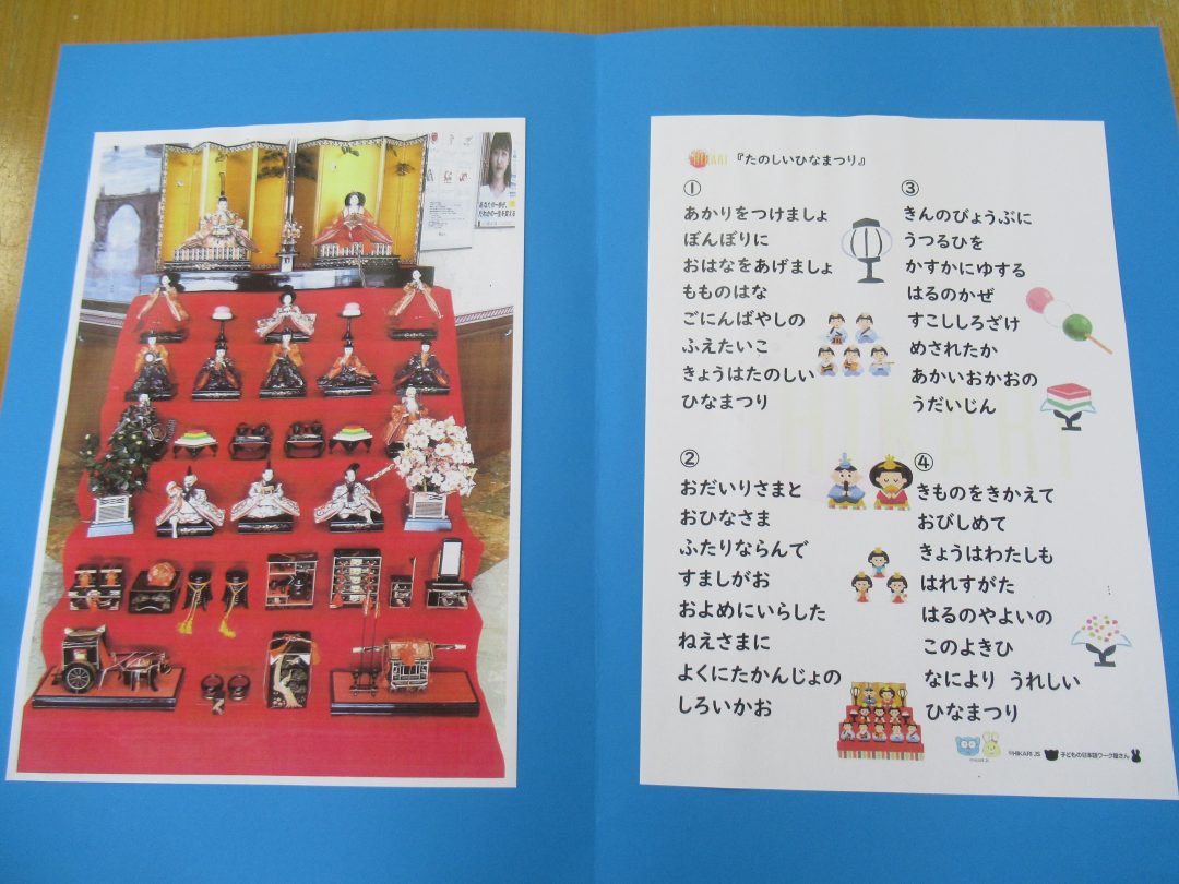 体をたくさん動かしたあとは、みんなで、「うれしいひなまつり♪」を大合唱。手拍子も加わり、最後までにぎやかに盛り上がりました🌹みなさんの歌声が、音楽♬に合わせてゆったりと重なり、穏やかな歌声が響きました🌷
