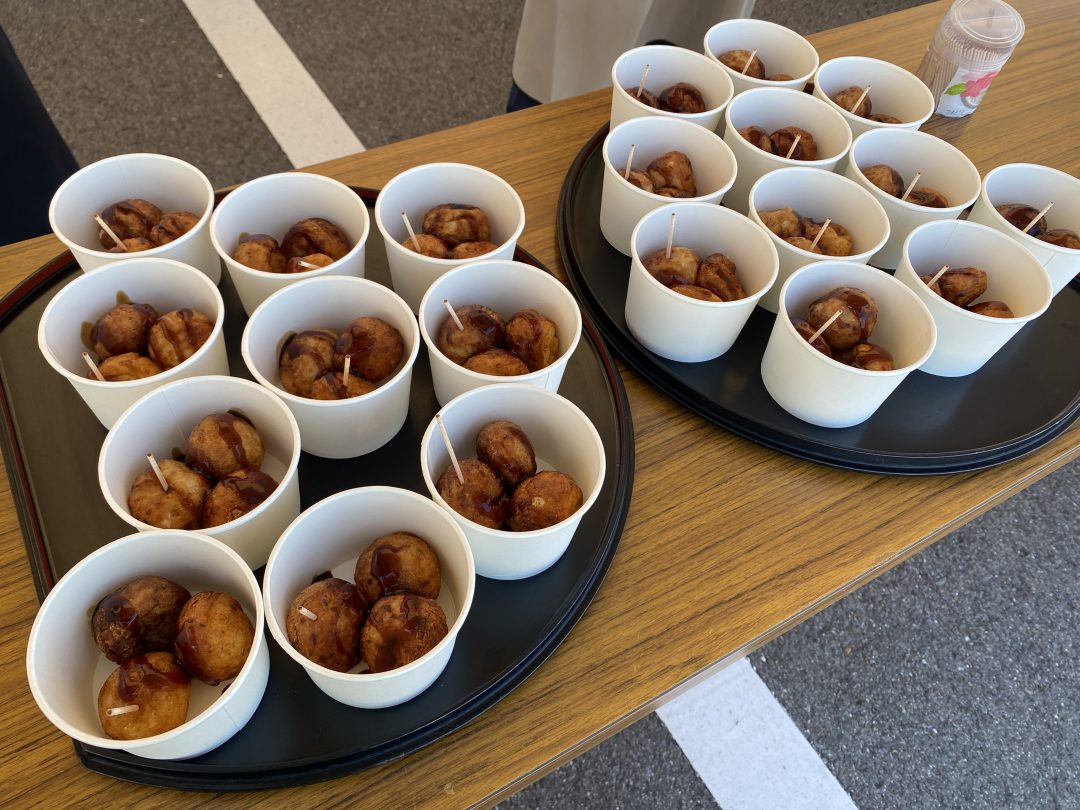 模擬店では、田楽やたこ焼き、スイートポテトなど