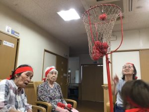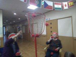 玉入れでは、一生懸命カゴに目掛けて、ボールを投げ続けました。