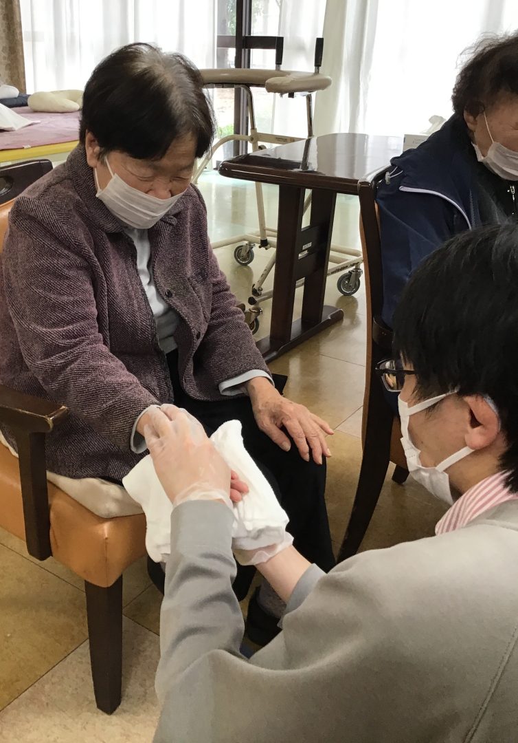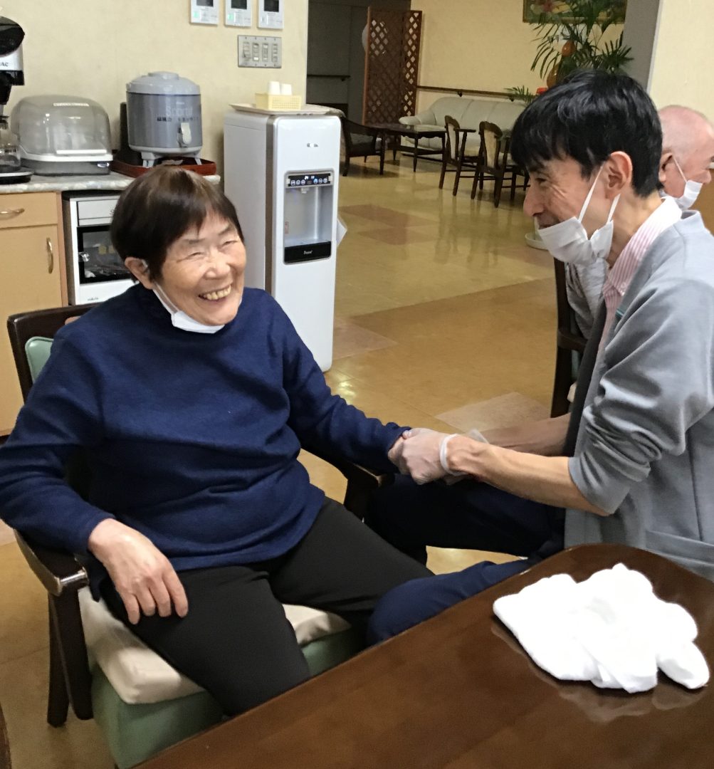 11月11日は「介護の日」であり、デイセンターモナ・リザでは、利用者様に日頃の感謝の気持ちをこめて、昨年も好評をいただいたハンドマッサージを実施させていただきました。人と人との触れ合い・手の温もりを感じることで、リラックス効果や血行促進の効果、脳の活性化につながります。