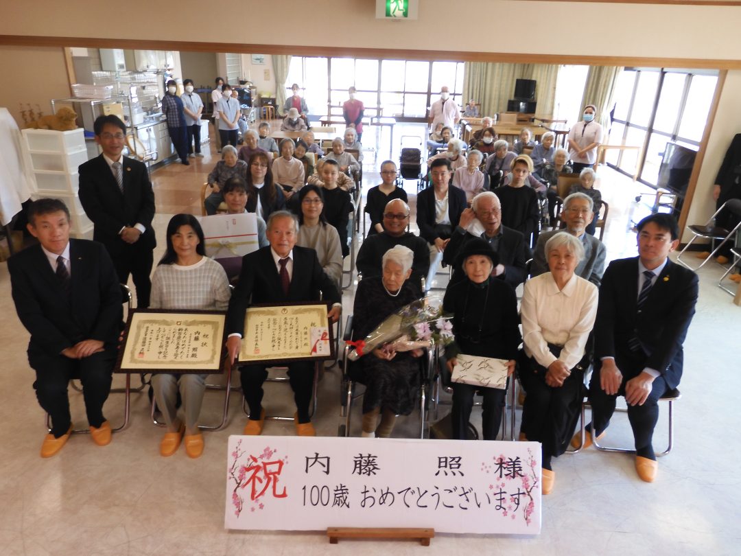 令和8年4月12日、ルネッサンス入所者 内藤照様 めでたく百寿を迎えられました。