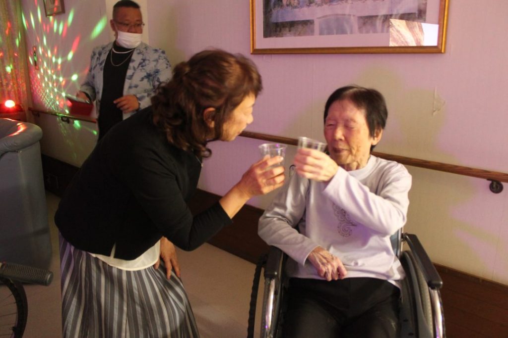 『施設に入ってお酒が飲めると思わんかった、うれしい』『昔は毎日飲んみょったけん、まだまだいけるぞ』と楽しまれておりました。