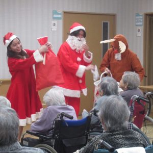 12月の緑風荘🍀-2025-年末は行事が盛りだくさん😄 🎄クリスマス会ではサンタさんとトナカイさんが各フロア…
