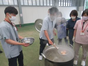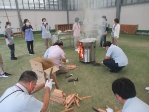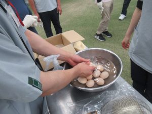 前回の炊き出し訓練では薪を使ってお湯を沸かし、ご飯🍚とゆで卵🥚を作りました