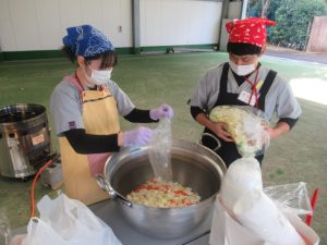 今回は地域の方もお招きし、ガスコンロを使用して豚汁作り🍲