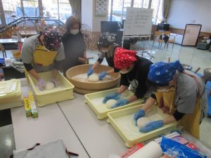 つきあがったお餅で鏡餅と餅花を作りました😀