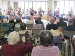 そんな中、寒さにも負けずに美波町のうしお連の皆さんが緑風荘にきてくれました。