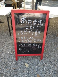 昼食には美波町の新鮮な魚や地元の野菜を使い、南阿波丼と伊勢エビの味噌汁を提供しました。