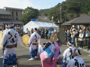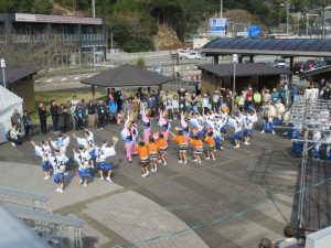 イベントのスタートは、阿波踊りでの応援からです。にぎやかな掛け声とリズムに包まれ、