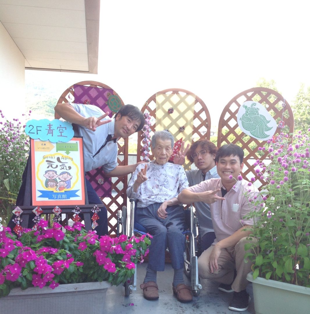職員が大切に育てたお花と一緒に撮影しました🌸