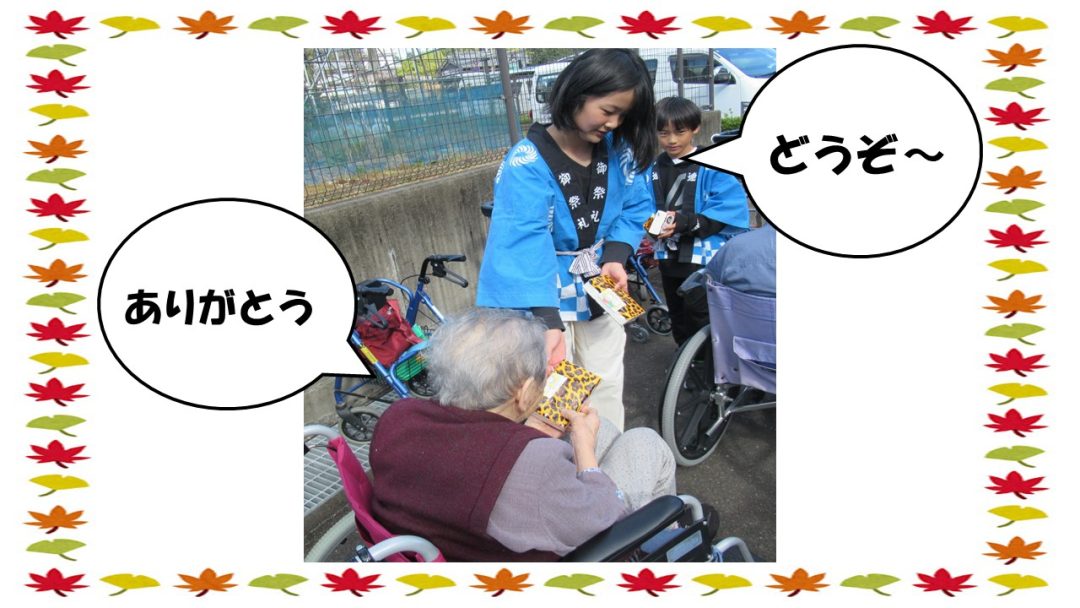 最後に子供達から利用者の方達にティッシュのプレゼント。