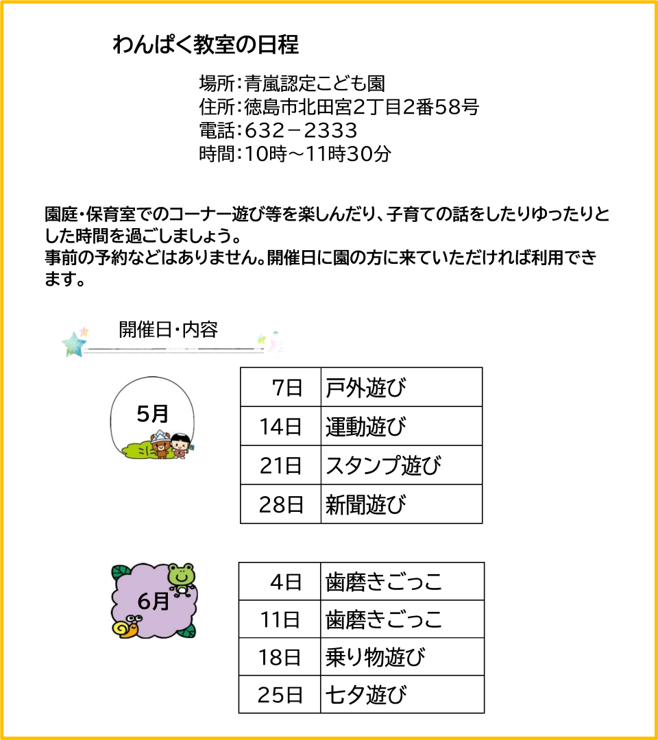 5月わんぱく教室・出前保育開催日
