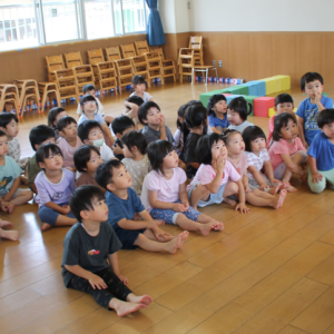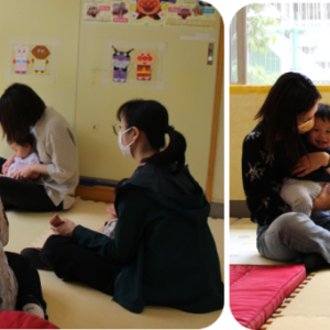 わんぱく教室・出前保育の日程今月の玄関環境は0歳児ひよこぐみです。おはながみをくしゃくしゃぎゅっぎゅっと丸め…