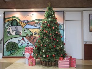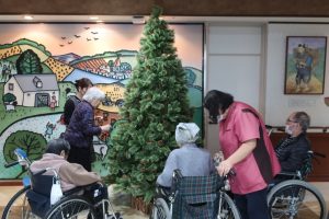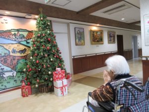 飾り付けは、入所者様と職員が一緒に行い、色とりどりのオーナメントやきらめくライトを一つひとつ丁寧に飾ってくださいました。