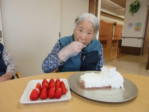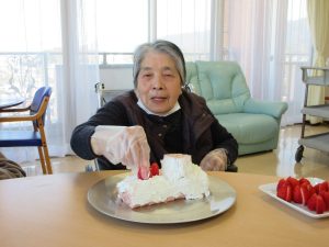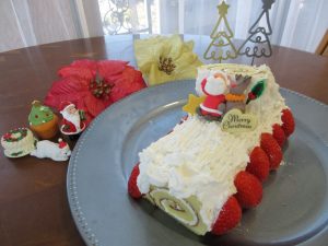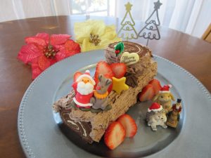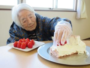 入所者様にロールケーキを使って「ブッシュ・ド・ノエル」のデコレーションに挑戦していただきました👩🍳✨