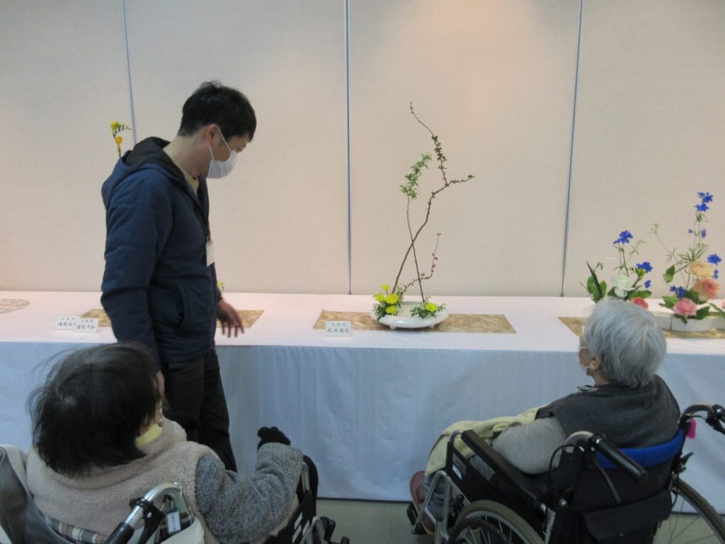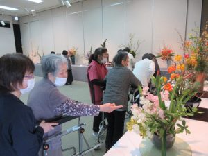 皆さま興味深そうに眺めながら「こんなに立派な生け花をされるなんてすごいなぁ」と感心の声があがっていました😍