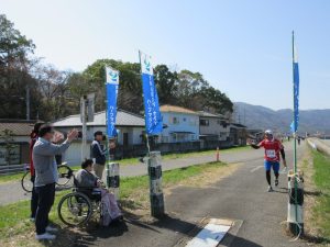 当日は天気にも恵まれ、入所者様と一緒に手作りの応援グッズを持って沿道へ向かいました📣