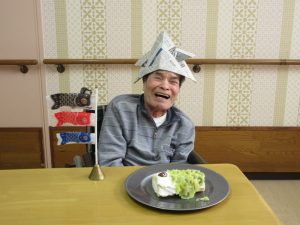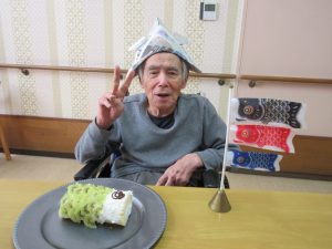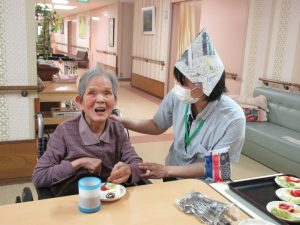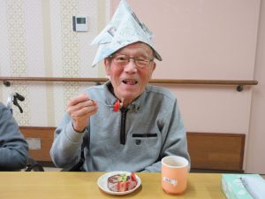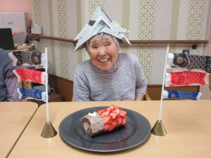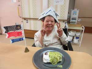 また、この日のためにご用意した新聞紙の手作り兜も大変喜んでいただき、皆さま楽しそうにかぶっておられました。