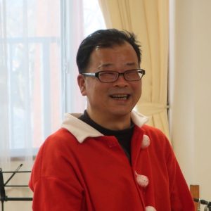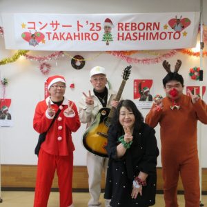 眼鏡をかけ、ご家族の手作りメッセージカードを