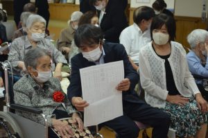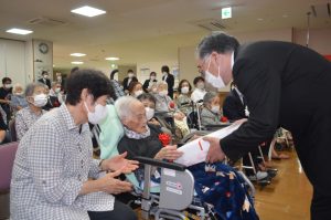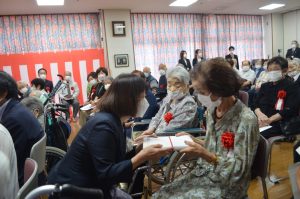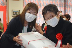 マリア・テレジアのご長寿の皆様には、山下一美施設長より記念品を贈呈しました。