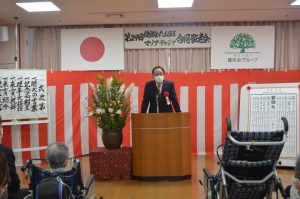 社会福祉法人健祥会からは、中村太一理事長に代わり、健祥会たんぽぽの初代施設長でもあった桝田和平部長より、お祝いのあいさつがあり、施設開所に携わった時のお話がありました。