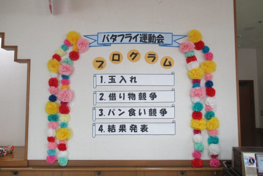 運動会に向けて皆様でペーパーフラワーを沢山飾りました。