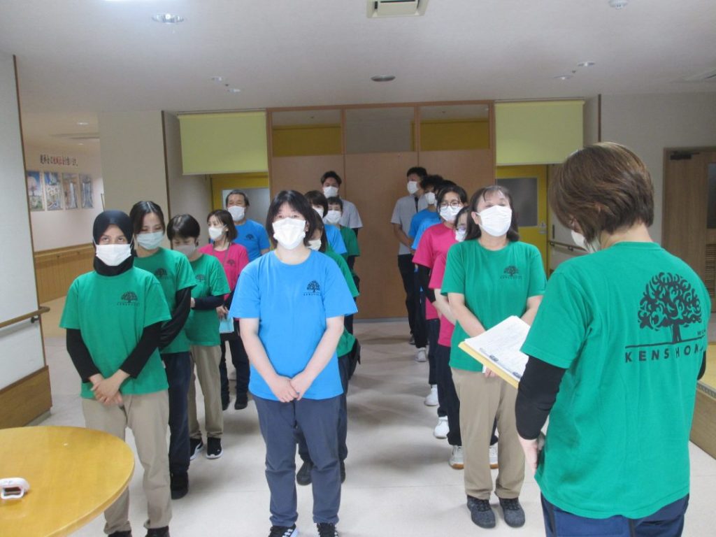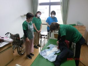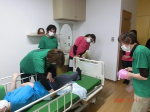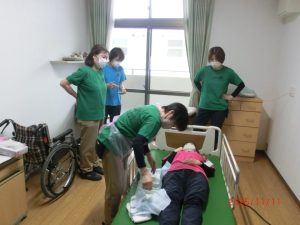 たんぽぽ施設内で職員対象に利用者役と職員役とに分かれて研修会を実施しました。