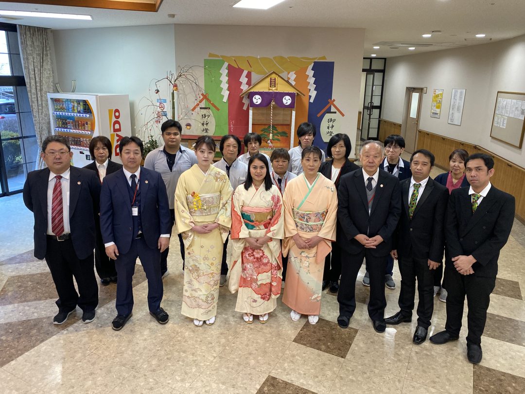 元旦ということで、職員も華やかな振袖姿でご挨拶させていただきました。