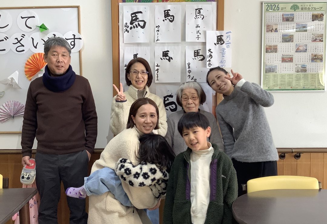ご利用者様のもとへご家族様が面会に来てくださいました。そのとき利用者様が真っ先に向かわれたのは・・・ご自身が心を込めて書かれた「書き初め」の前でした。