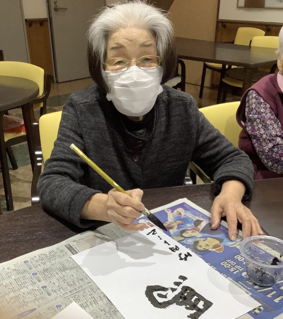 書き初めの時間には、皆様それぞれが精神を集中させ、真剣な表情で筆を握られていました。「よし、書くぞ!」と気合十分。墨の香りに包まれ、自然と背筋が伸びるような空気が流れます。一筆一筆、ゆっくりと丁寧に。納得のいく一文字を目指し、心を込めて書き進められていました。