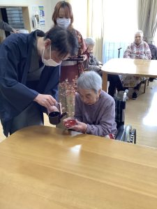 藤吉郎では本日、入居者様の健康と、笑顔あふれる日々を願いながら「お屠蘇(おとそ)」を振る舞いました。