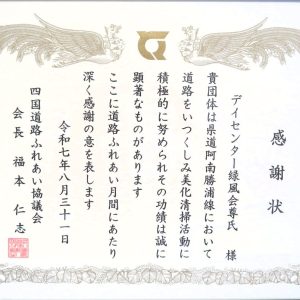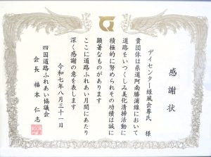 四国道路ふれあい協議会 会長表彰「感謝状」