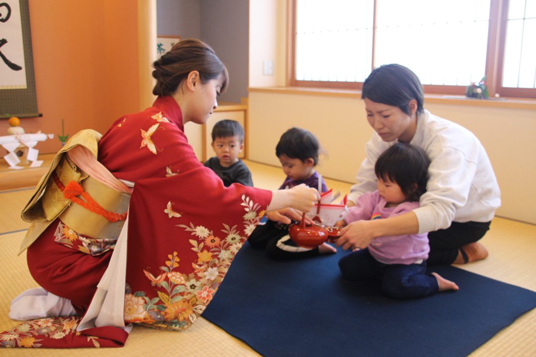 可愛い着物を着た年女の先生から今年の健康と安全を祈って”魔法のジュース”をいただきました