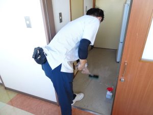 午前中は入居者様への日頃の労いを込めて、居室入口の清掃を行いました!!