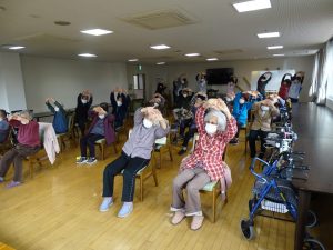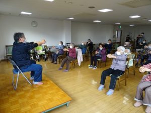午後からは、吉野川リハビリセンターより職員を招き、フレイル予防の体操指導、を行っていただきました。