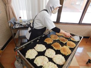 なぜなら、食堂に鉄板を用意して、入居者様の目の前で焼き上げるのです。