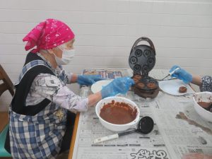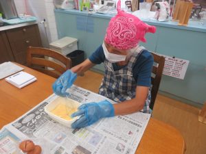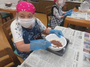 いよいよ焼く工程になり、年長のご利用者お二人に託しました🙇