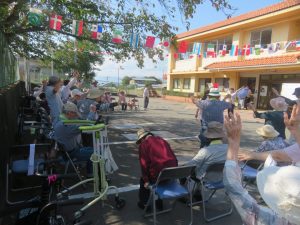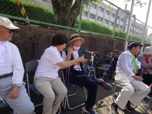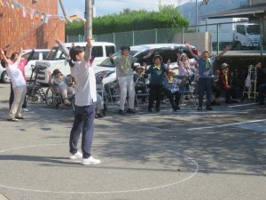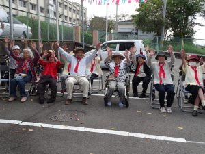 また、近隣の川島中学生の皆さんからも声援を頂き、入居者様、利用者様もより気合いが入った様子でした。