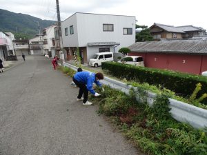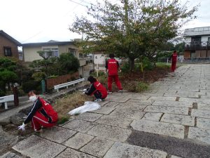 で清掃を行いました。現在駅舎の改築工事が、行われており駅前道路の清掃を