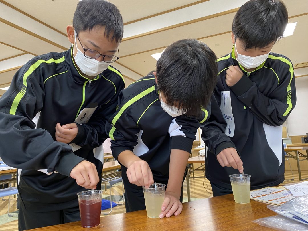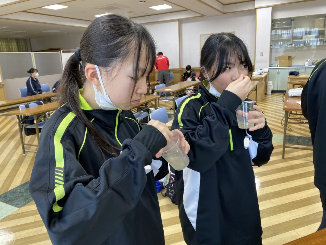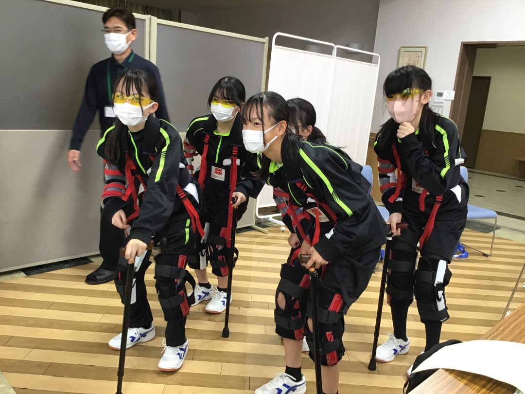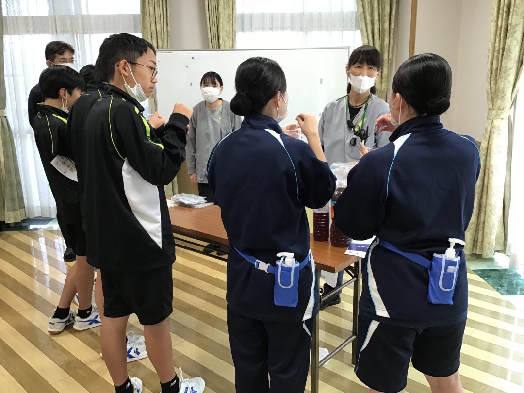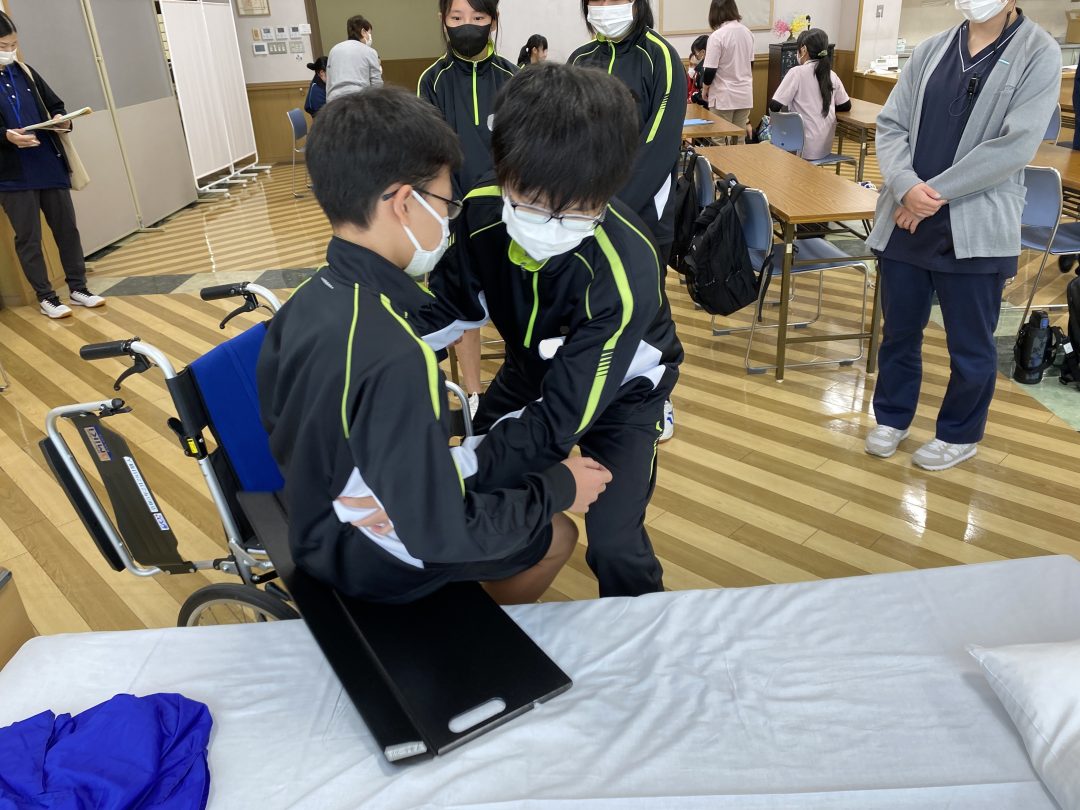 市場中学校1年生と実習に来ていた富岡東高校看護科3年生が