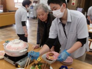 昔、飲食店で働いていた経験のある伊藤君が綺麗に鍋へ盛り付けてくれました🥰